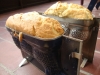 Die 2 Hälften werden gut ausgefettet und mit etwas Mehl ausgestäubt. Dann werden sie mit den Klammern verschlossen und auf ein Backblech gestellt. Falls etwas Teig aus den Förmchen rausläuft, ist es gut, auf das Backblech etwas Butterbrotpapier oder Backfole zu legen. So spart man sich zumindest das Blech zu spülen 😉